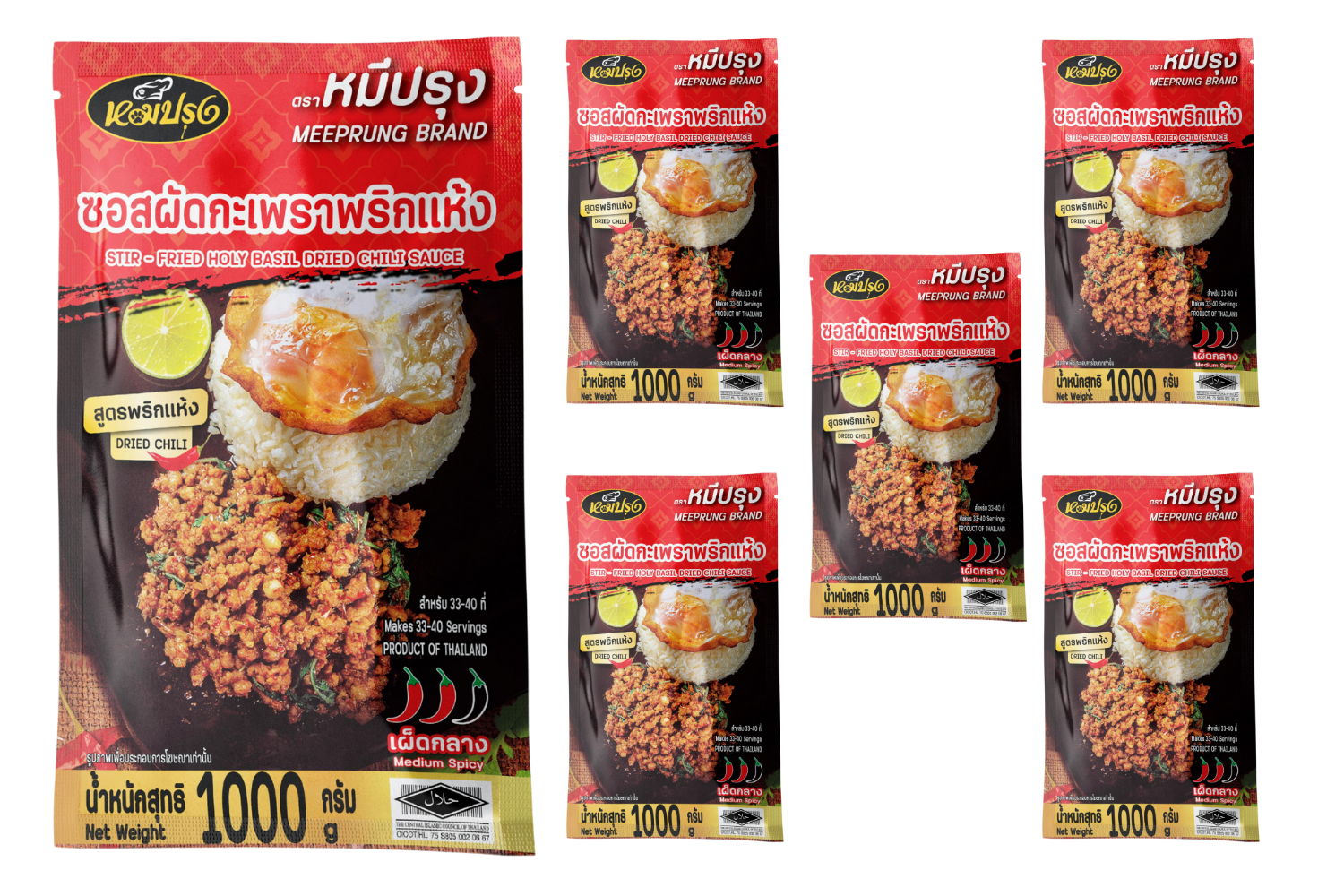 ซอสผัดกะเพราสูตรพริกแห้ง 1 กิโล 12 ถุง (1ลัง)